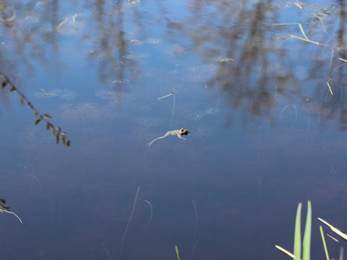 Schleicht man sich im Frühsommer langsam und vorsichtig an einen Teich oder Tümpel heran, kann man gelegentlich einen Grasfrosch faul im Wasser „schweben“ sehen. Im zeitigen Frühjahr, meist Mitte bis Ende März, finden sich die aus der Winterstarre erwachten Grasfrösche am Laichgewässer ein, nachdem sie nachts bei frostfreiem Regenwetter dorthin gewandert sind. Die Männchen halten am Ufer und im Flachwasser nach den etwas später eintreffenden Weibchen Ausschau.