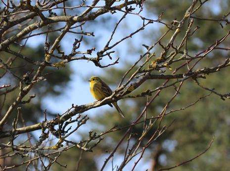 Die Männchen der Goldammer tragen während der Brutzeit ein leuchtend gelbes Prachtkleid und sind leicht zu erkennen. Die Rufe der Goldammer sind auch im Hochsommer noch häufig zu vernehmen. Ihr Gesang besteht aus einem hohen „Ti-ti-ti-ti-ti-ti“, gefolgt von einem tieferen „Tüüüüh“ – lautmalerisch wird es mit „ich-ich-ich hab dich lieb“ umschrieben.
