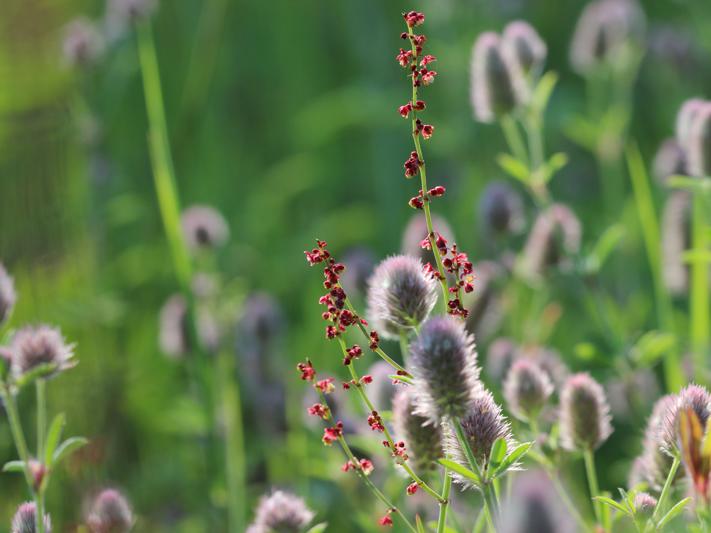 Die köpfchenförmigen Blütenstände des Hasen-Klees sind ganz weich behaart und erinnern an Hasenpfötchen – muss man unbedingt streicheln! Die zarten Blättchen des Kleinen Sauerampfers sind essbar und schmecken angenehm säuerlich. Sie enthalten allerdings reichlich Oxalsäure, die in größeren Mengen auch für den Menschen schädlich sein kann.