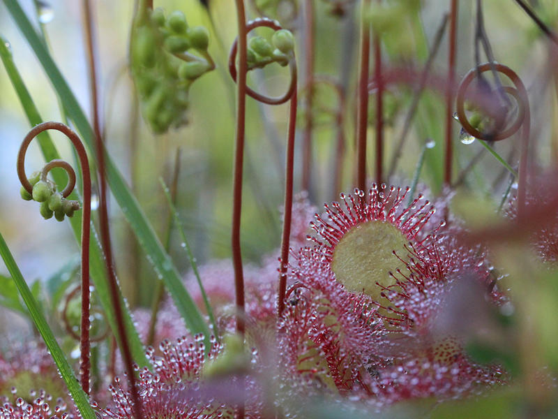 Der Sonnentau ist eine fleischfressende Pflanze. Mit Hilfe seiner charakteristischen, mit Klebdrüsen besetzten Blätter kann er kleine Insekten fangen und so die Nährstoffarmut seiner Standorte ausgleichen. Der Sonnentau wächst oft in großen Herden auf feuchten, sauren Böden, z. B. in Mooren, Heiden und Sümpfen oder auch an Ufern von Fließgewässern.